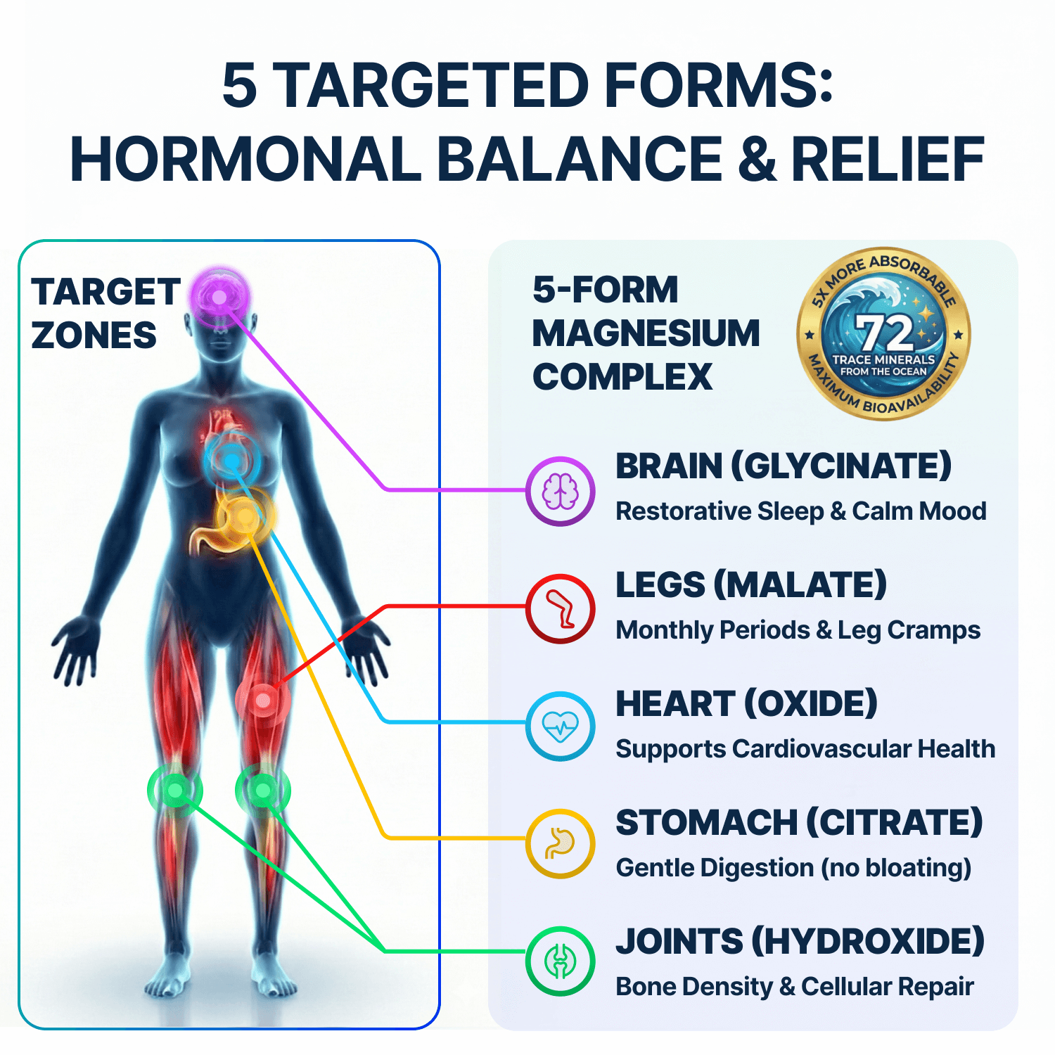 Aqua-Ionic™ Technology delivers magnesium in a highly bioavailable ionic form for faster, easier absorption—gentle on digestion and designed for better everyday use.