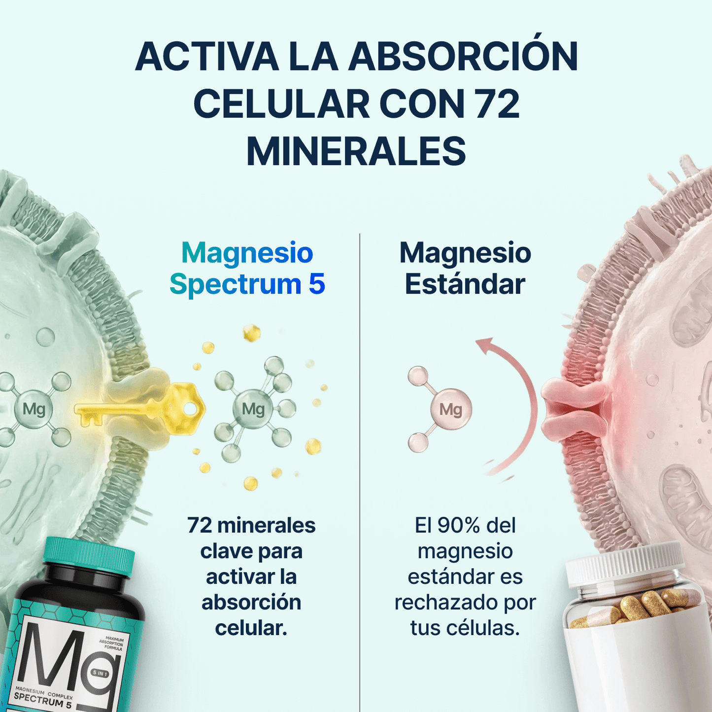 El 90% del magnesio estándar es rechazado por las células.