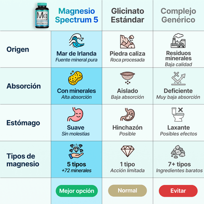 Sí, Spectrum 5 Magnesio está formulado para uso diario y puede tomarse a largo plazo para ayudar a mantener niveles saludables de magnesio y contribuir al bienestar general. El magnesio es un mineral esencial que el cuerpo necesita a diario, y la combinación de múltiples presentaciones en Spectrum 5 ayuda a garantizar una absorción eficaz y beneficios sostenidos.