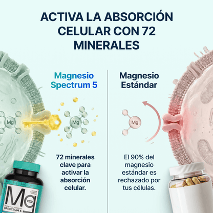 El tiempo que tarda en notarse el efecto de Spectrum 5 Magnesium puede variar según los niveles de magnesio de tu cuerpo y el uso que le des. Algunas personas notan mejoras en la relajación, la calidad del sueño o la reducción de la tensión muscular en pocos días, mientras que beneficios como mayor energía, apoyo contra el estrés o un equilibrio mineral general pueden requerir varias semanas de uso constante.